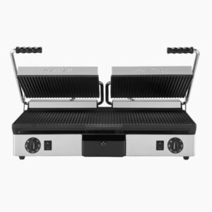 DOUBLE CAST IRON PLATE 1/2 SMOOTH 1/2 ROW 3,5KW Half smooth and half ribbed lower plate, smooth + ribbed upper
